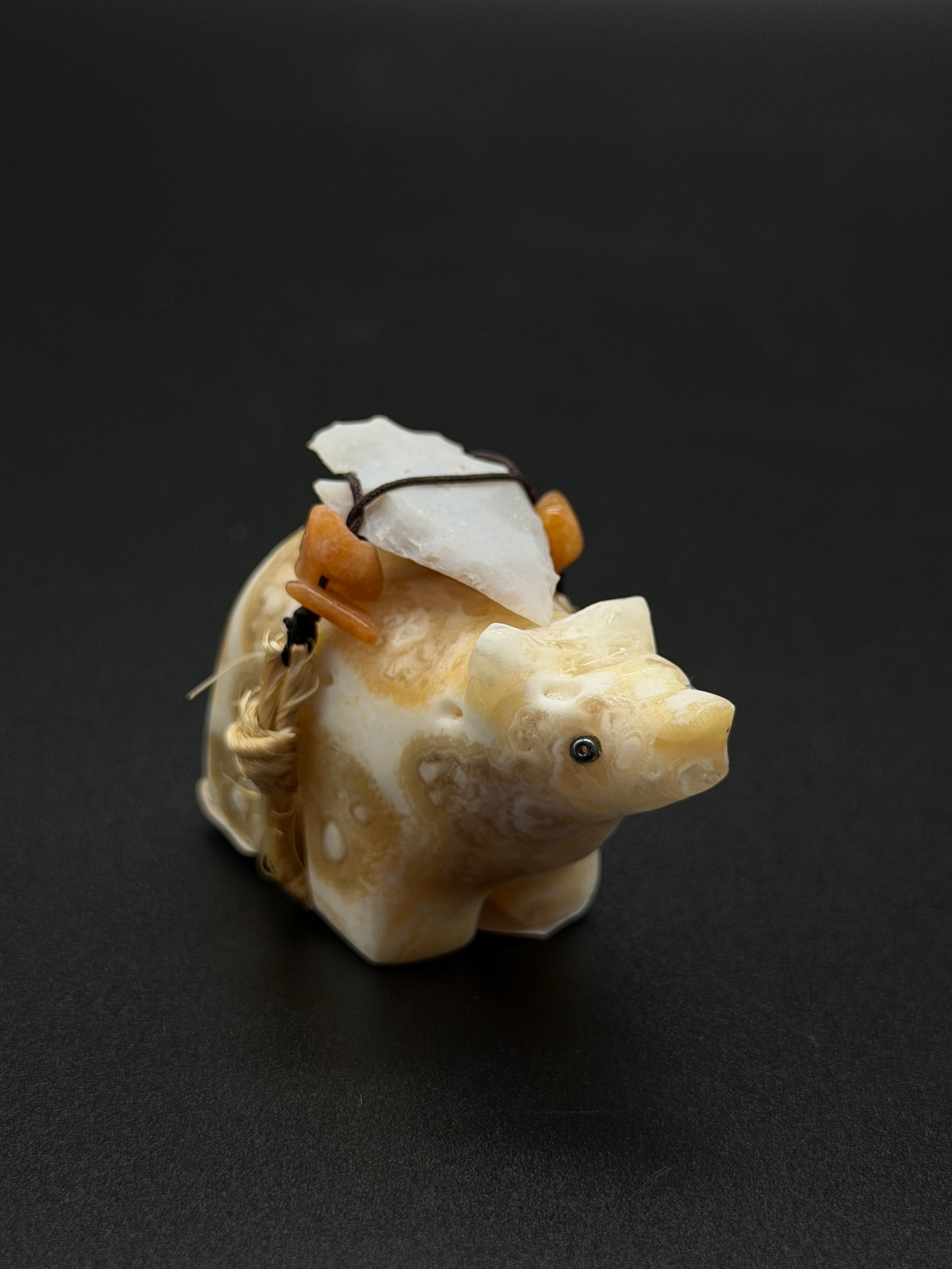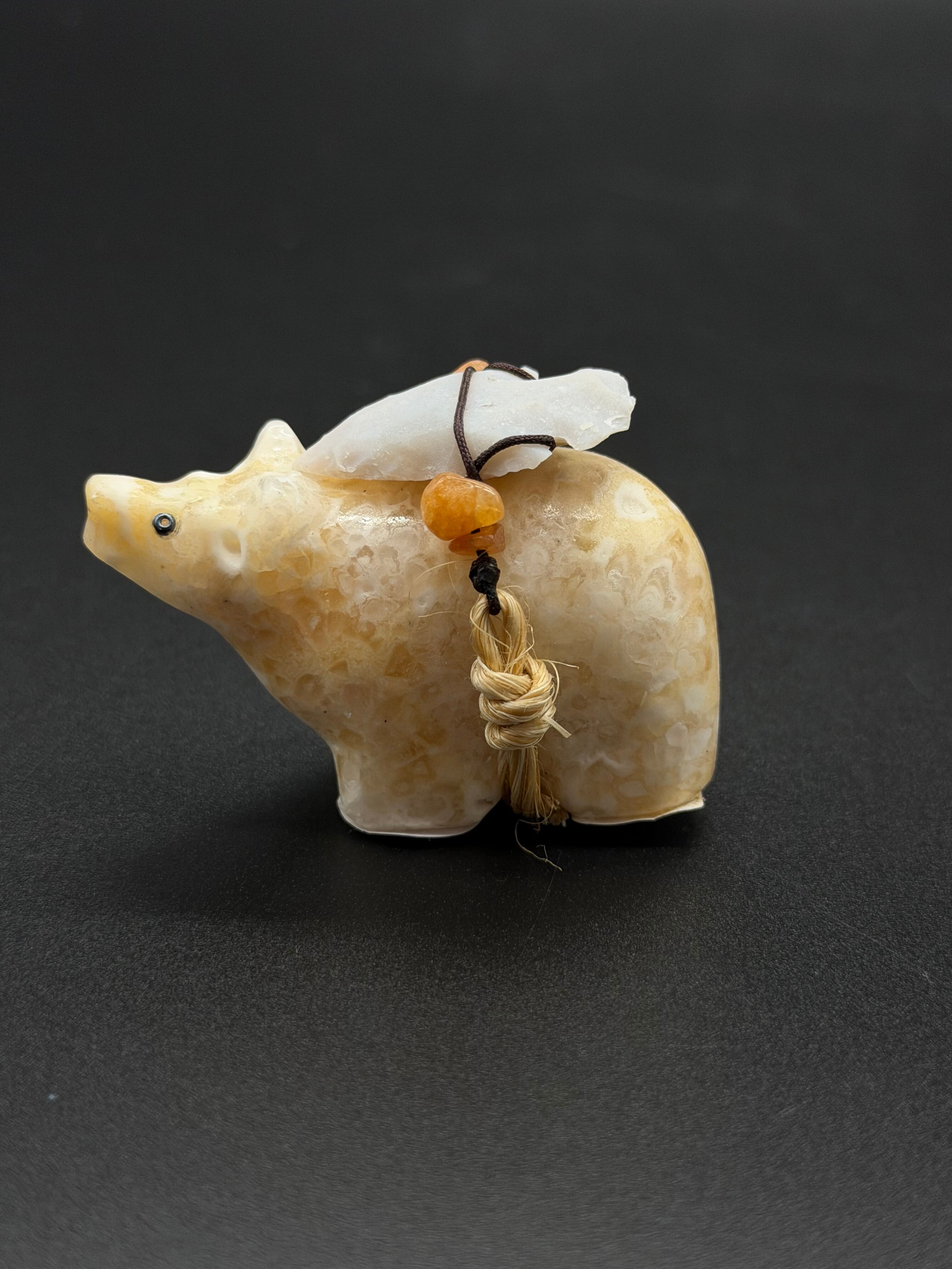 *モチーフ:形から見て**「クマ(Bear)」**を象ったものだと思われます。ズニ族の仰において、クマは「西」の方角を守護し、癒やし(ヒーリング)や強さ、不屈の精神の象徴とされています。