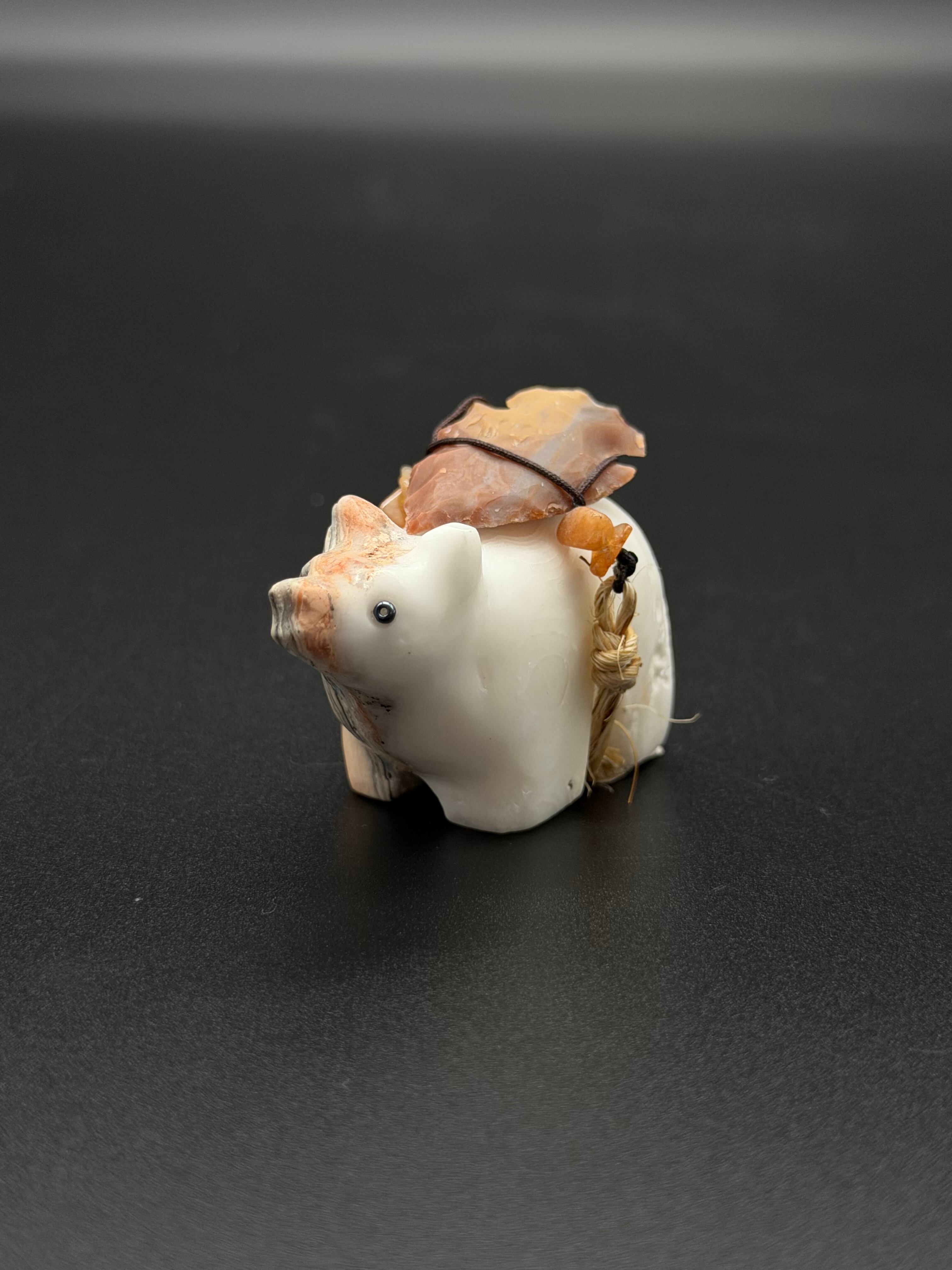 *モチーフ:形から見て**「クマ(Bear)」**を象ったものだと思われます。ズニ族の仰において、クマは「西」の方角を守護し、癒やし(ヒーリング)や強さ、不屈の精神の象徴とされています。